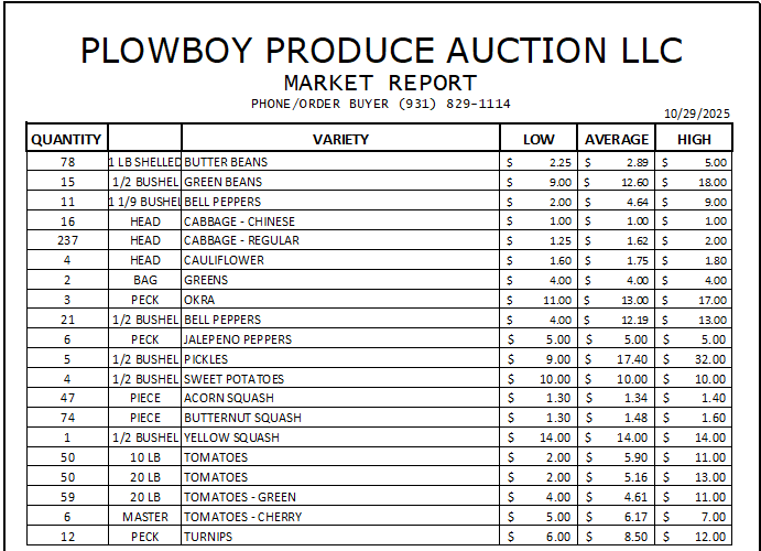 Auctions happen Monday, Wednesday, and Friday at 1PM. Arrive early and grab a bid number as produce and bids vary from day to day.